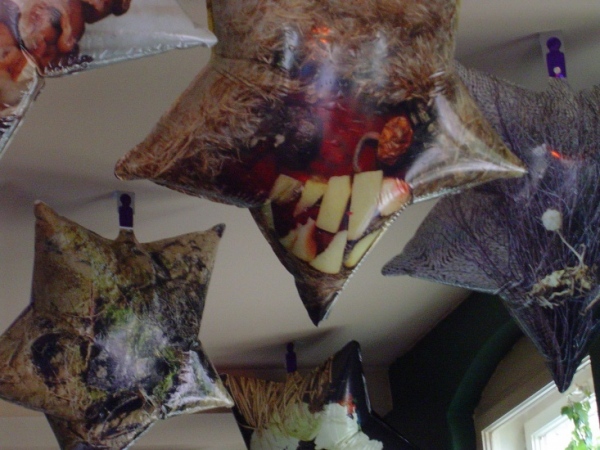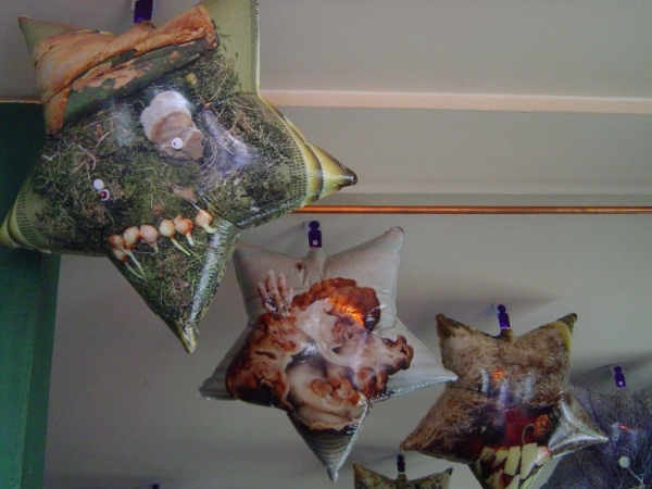 2005.-2006. Installation, photo. Weimar (Germany), Riga (Latvia)Things which make your life happier are easy, but often forgotten. I want to remind people to be awake and use wisdom every time when demons attack. Think about bright things at dark moments of life is inspired by ancient Latvian pagan ritual heritage and aesthetics.