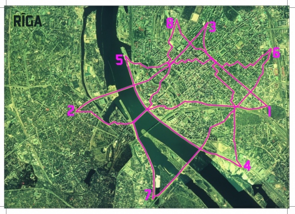 Since ancient times people have known countles ways of protection themselves from evil and promoting their well-being with the oid of magical rituals. The eight-pointed Auseklis star, down in an unbroken line on the outside doors of houses, prevent phantoms, witches and covetous persons from entering or doing harm to people and cattle. Using the knowledge of the ancestors and the positive energy of the Auseklis star as a basis, I have decided to perform a ritual that will protect Riga. Using a map of the city and the network of streets, I have found a route that, if followed without deviation, will trace out a huge eight-pointed Auseklis star. By analogy with the blessings brought by the Auseklis on the doors of houses, this magical rite will prevent future evil coming into Riga. My precious city will be saved, I will fulfill my human duty – I will make life better!