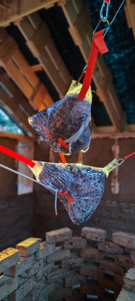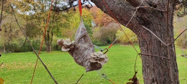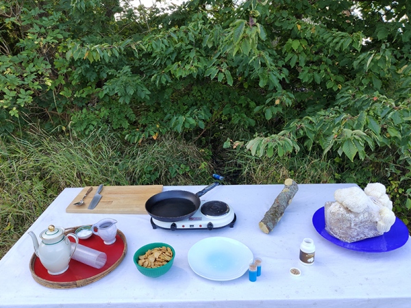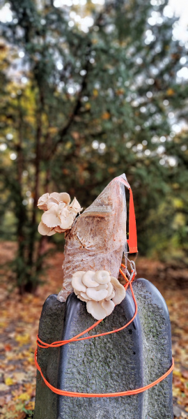 For a long time, I have had a specific interest in Lion’s Mane Mushroom (Hericium Erinaceus). Lion’s Mane is a culinary and medicinal mushroom, which is associated with neuronal health benefits and cognitive functions. Lion's Mane works as a remedy for depression, memory loss, Alzheimer and dementia. It can boost neurogenesis, neuroplasty and creativity. The installation Mushroom Totem Garden consists of vertically stacked logs inoculated with Lion’s Mane mycelium. After some time the totem garden will become alive and give mushroom fruit bodies.