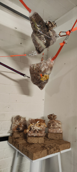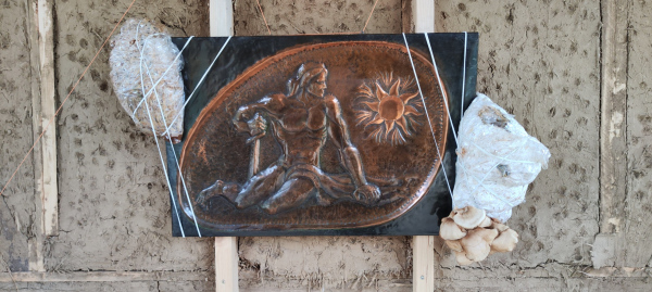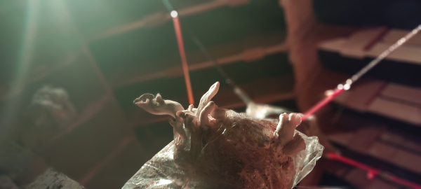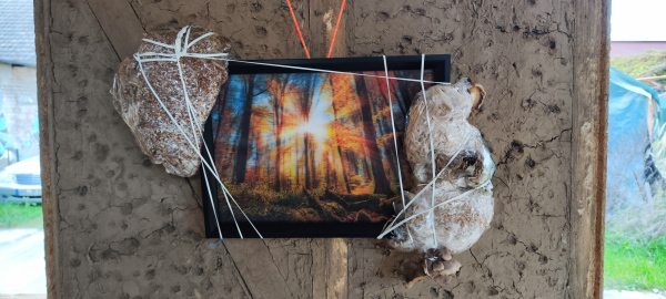 Linards Kulless' 'Mushrooms' exhibition uses self-grown mushrooms in sculptures to explore themes of growth, resilience, and healing, drawing parallels between fungi and human experiences. Part of installation is artwork from 1978, created by his father, who passed away many years ago. Kulless bridges generations, celebrating the transformative power of mycelium and art in overcoming trauma. The exhibition invites reflection on life's interconnectedness and transformation, highlighting how art and mycelium foster regeneration and healing.